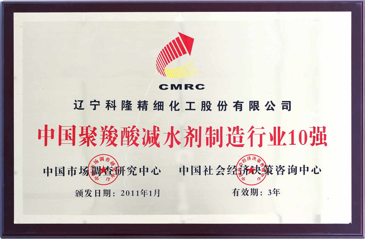中國混凝土外加劑綜合實力10強(qiáng)企業(yè)