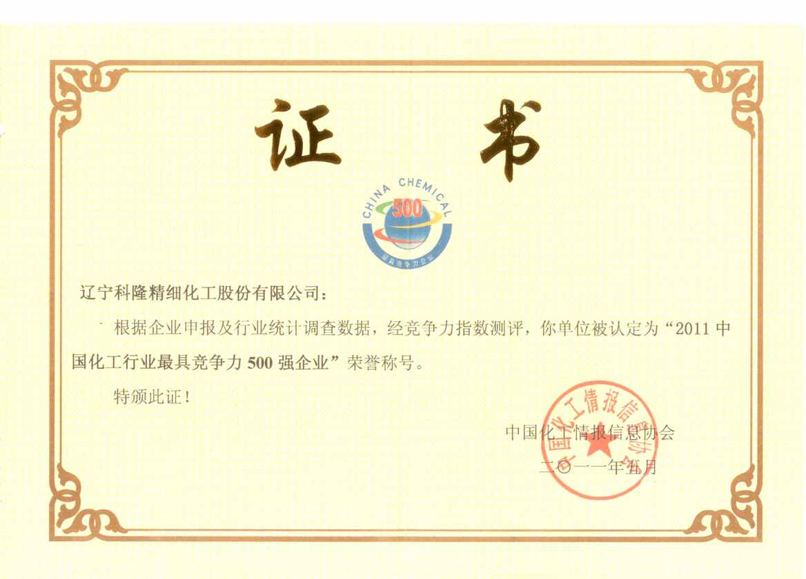 中國化工行業(yè)最具競爭力500強(qiáng)企業(yè)